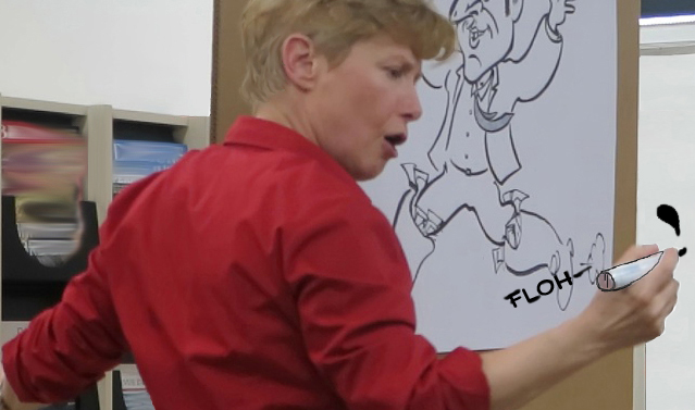 Mix show ( avec Helene Mirscheid ) im Verlängertem Wohnzimmer, Berlin D’un Général peu ordinaire à un Président normal Centre culturel français, Essen Centre culturel français, Fribourg Une caricaturiste déballe son sac im Stadtfenster Duisburg ( VHS et DFG-Duisburg )