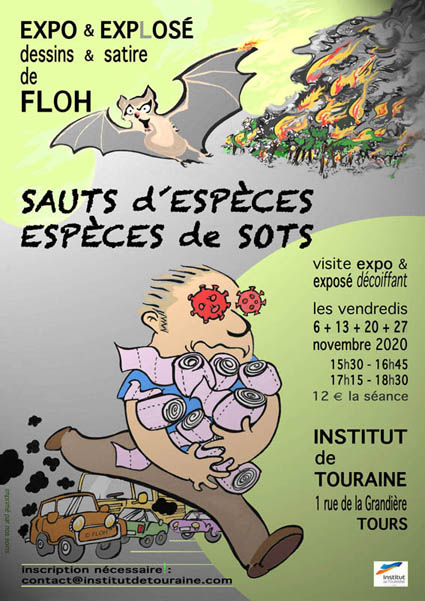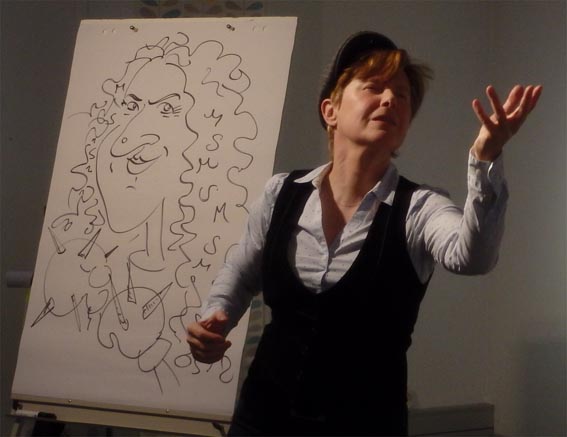 Exposés décoiffants performances satiriques avec caricatures-tableaux en direct et peut-être un zeste de musique (de 20 à 65 mn) couplées avec exposition ou non